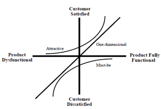 A Kano diagram customer satisfaction is a way of understanding the characteristics of a new product that are most important to the customer. As the Figure 1 shows the model involves two dimensions: