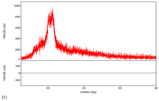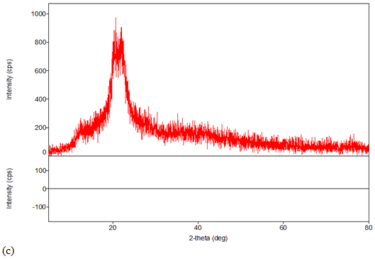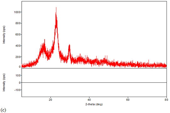 Figure 2.XRD diffractogram for 10% NaOH with heating durations of (a) 2 hours, (b) 4 hours, and (c) 6 hours.