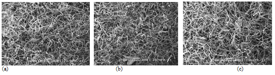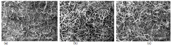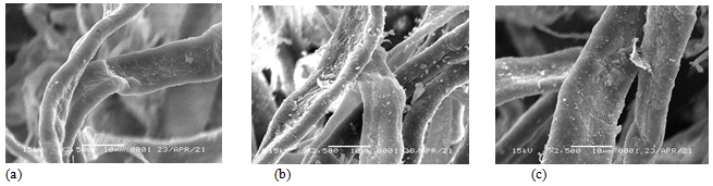 Figure 8. SEM results of 2500X 10% NaOH with heating durations of (a) 2 hours, (b) 4 hours, and (c) 6 hours.