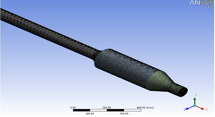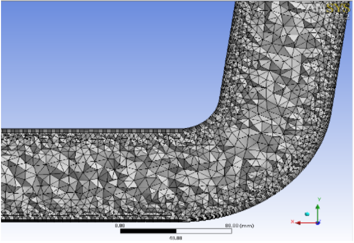 The models used for optimizations are created in the CAD package and the computational model is created in CFD. The volume mesh consists of tetrahedral elements. 5 prism layers of 1 mm thickness are utilised along the walls of the pipe to enhance accuracy in border layers, as shown in the Figure 3. Grid dependent study was done to see the effect of mesh size and element size were found to be 2mm effective.