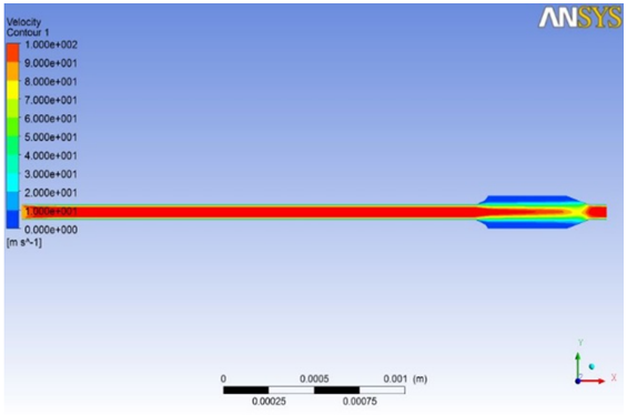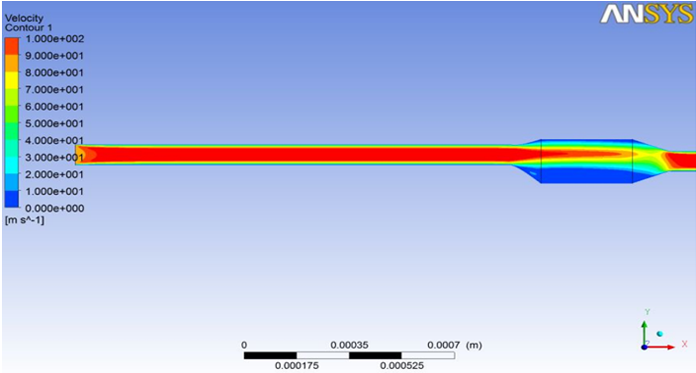 In order to examine the effect of flow distribution over the substrate, velocity contour plot is considered at three different sections for the given model. The uniformity index (), is calculated for three different sections as follows: