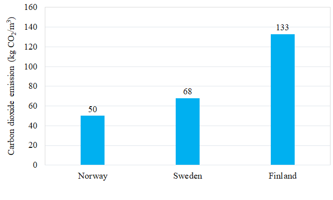 Figure 4.Average carbon dioxide emissions from wooden frames in Norway, Sweden, and Finland.