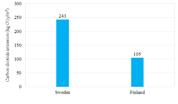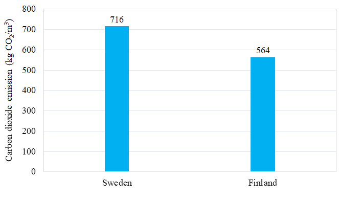 Figure 6.Average carbon dioxide emissions from concrete frames in Sweden and Finland.