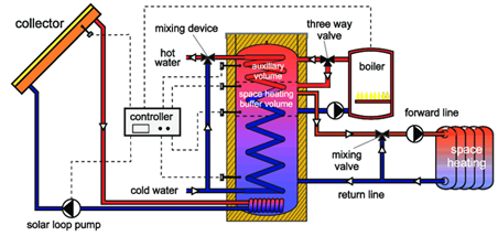 The Figure 1 represent a typical solar thermal system with its main componets and the solar collectors types are described in the preceeding sections.