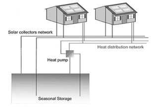 Figure-1. Scheme of a Central Solar Heating Plant with Seasonal Storage [9].