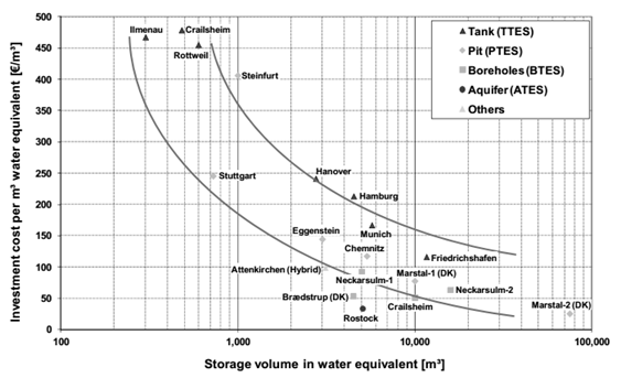 ]. So far, the development of seasonal storage has been aimed at heating large district system stores in order to fulfill technical viability and cost effectiveness by using large storage volumes. Fisch et al. reviewed large scale solar plant development in Europe during the 1990s [8