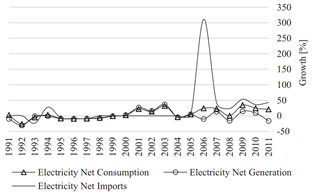 ]. The rate of generation, consumption and imported electricity is also obvious from Figure 1, which shows the largest part of electricity of country is imported.