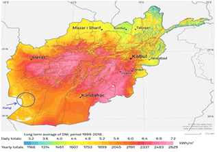 Figure-3.Direct normal irradiation (DNI) of Afghanistan [9].