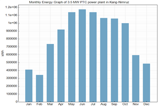Figure-13. Monthly generated electricity of 3.5 MW PTC power plant, simulated in the SAM.