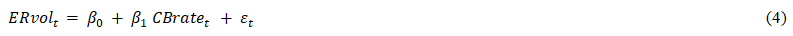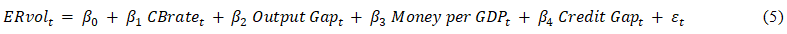 Equation 4 presents that exchange rate volatility is explained by the central bank policy rate.